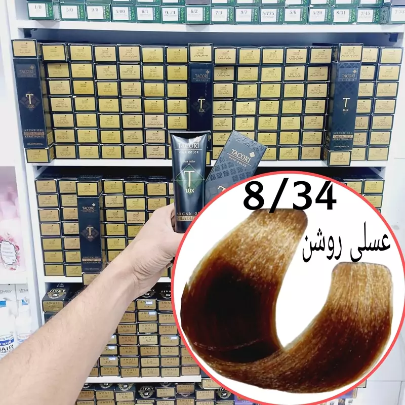 رنگ مو برندتاکوری عسلی روشن(8.34) حجم125میل حاوی کراتین و آرگان و شی باتر