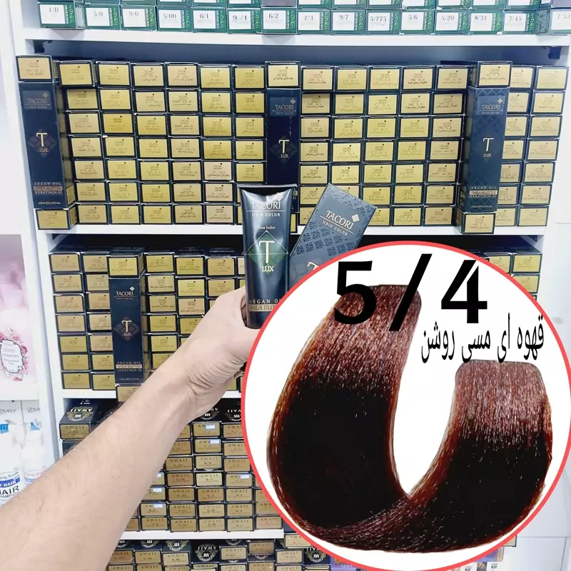 رنگ مو برندتاکوری قهوه ای مسی روشن (5.4) حجم125میل حاوی کراتین و آرگان و شی باتر