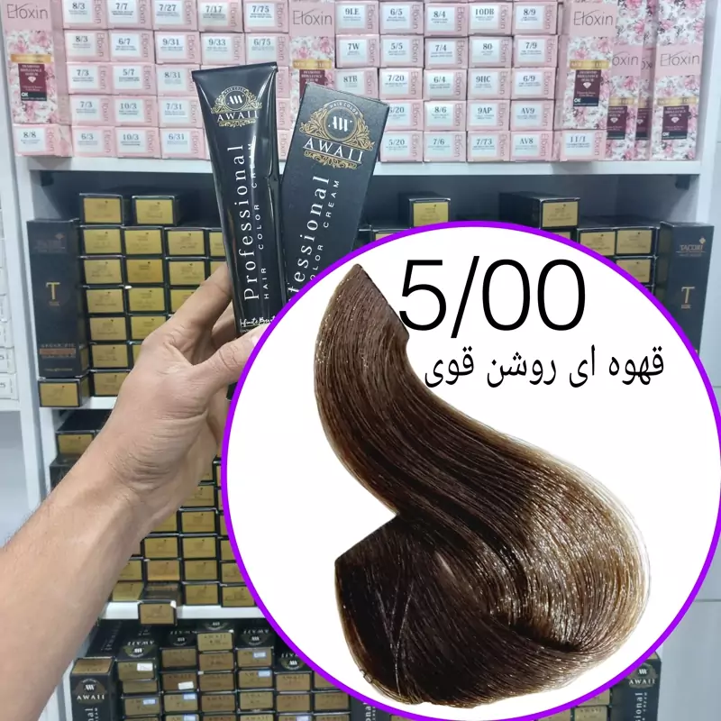 رنگ مو برند آوایی شماره( 5.00)قهوه ای روشن قوی حجم120میل حاوی کراتین و آرگان.ئاوایی.اوایی
