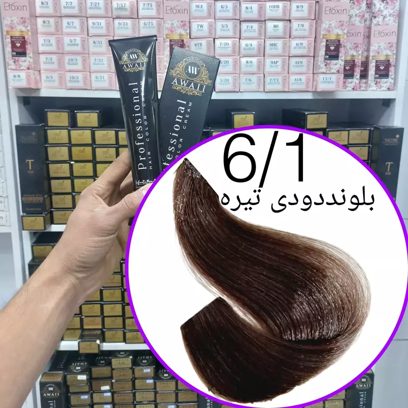 رنگ مو برند آوایی شماره( 6.1) بلوند دودی تیره حجم120میل حاوی کراتین و آرگان.ئاوایی.اوایی