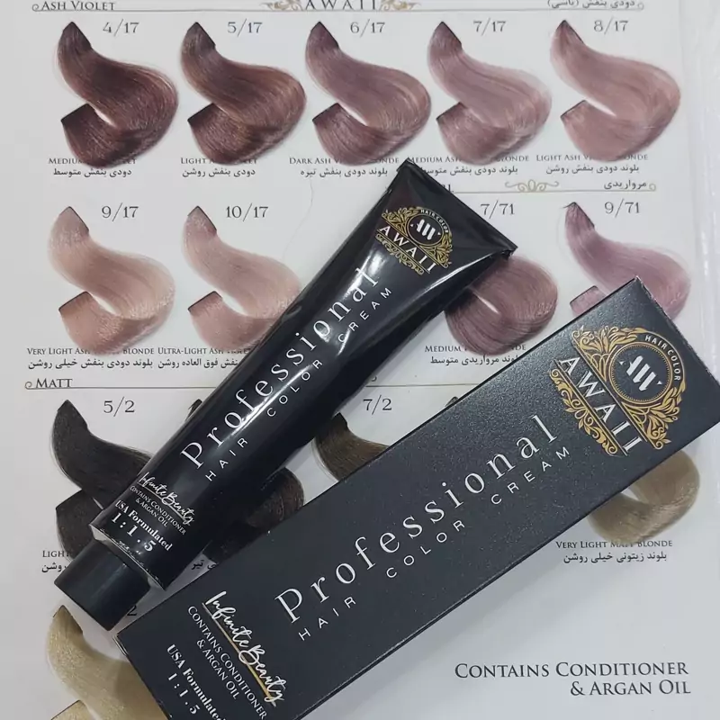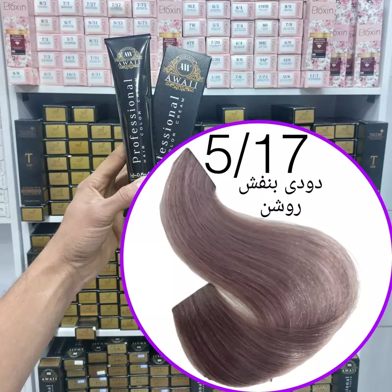 رنگ مو برند آوایی شماره( 5.17) دودی بنفش روشن حجم120میل حاوی کراتین و آرگان.ئاوایی.اوایی