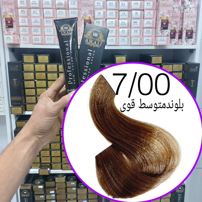رنگ مو برند آوایی شماره( 7.00)بلوند متوسط قوی حجم120میل حاوی کراتین و آرگان.ئاوایی.اوایی