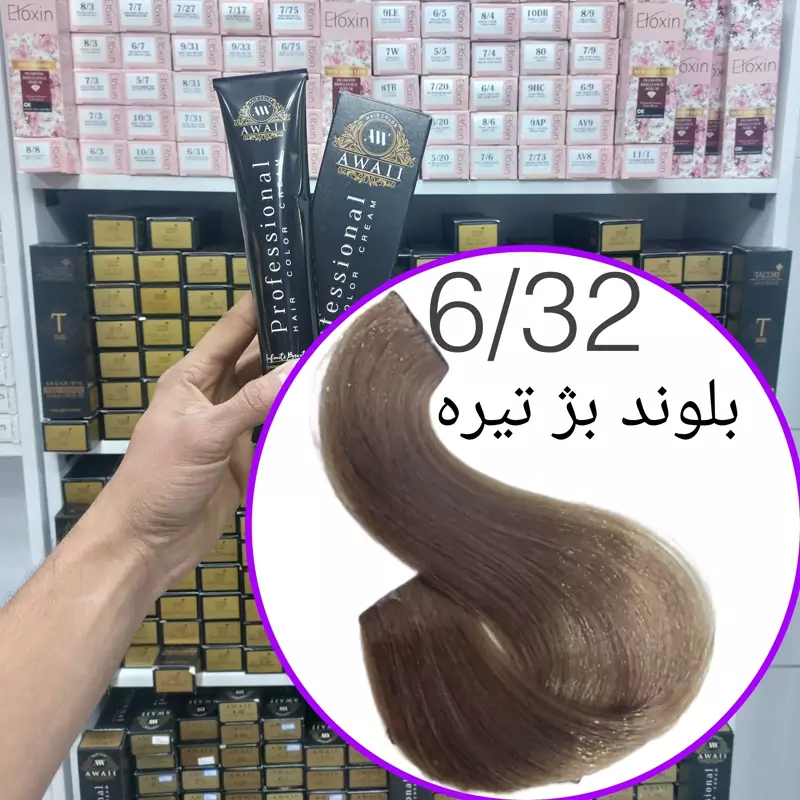 رنگ مو برند آوایی شماره(6.32)بلوند بژ تیره حجم120میل حاوی کراتین و آرگان.ئاوایی.اوایی
