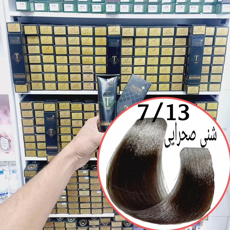 رنگ مو برندتاکوری شنی صحرایی(7.13) حجم125میل حاوی کراتین و آرگان و شی باتر