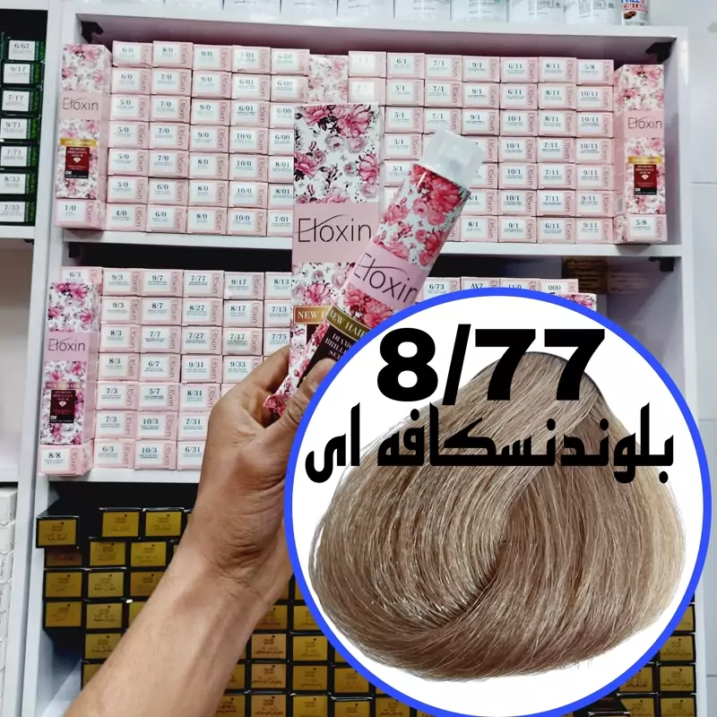 رنگ مو برند الوکسین بلوند نسکافه ای (8.77) حجم120میل حاوی سرم الماس و برلیان