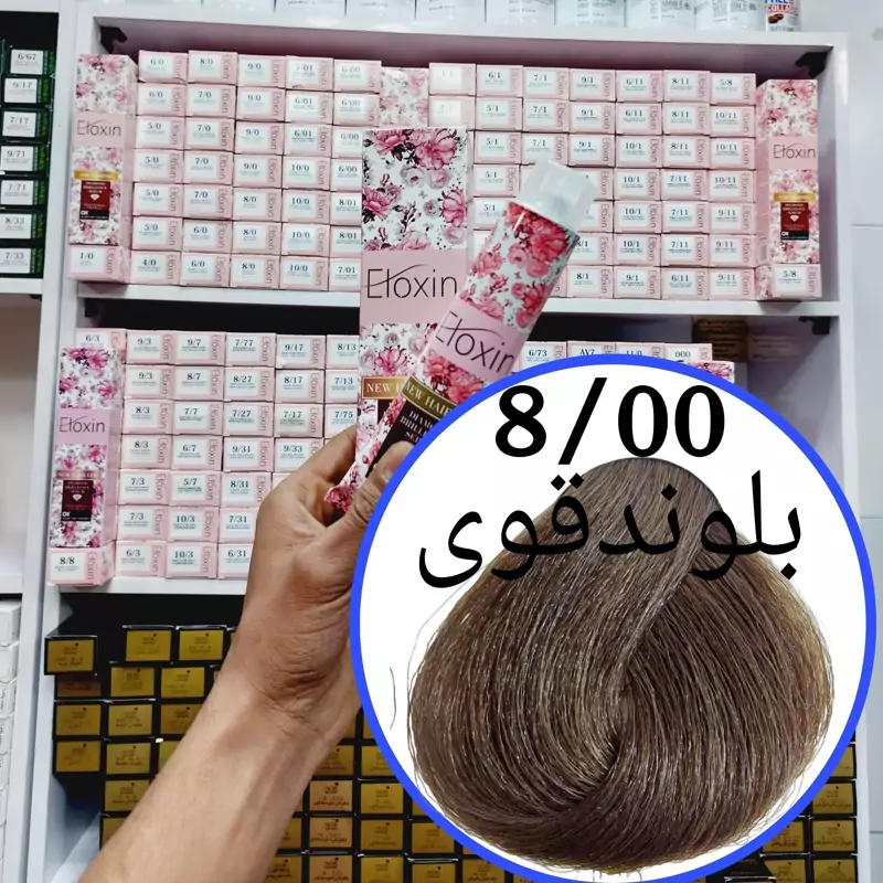 رنگ مو برند الوکسین بلوند قوی (8.00) حجم120میل حاوی سرم الماس و برلیان