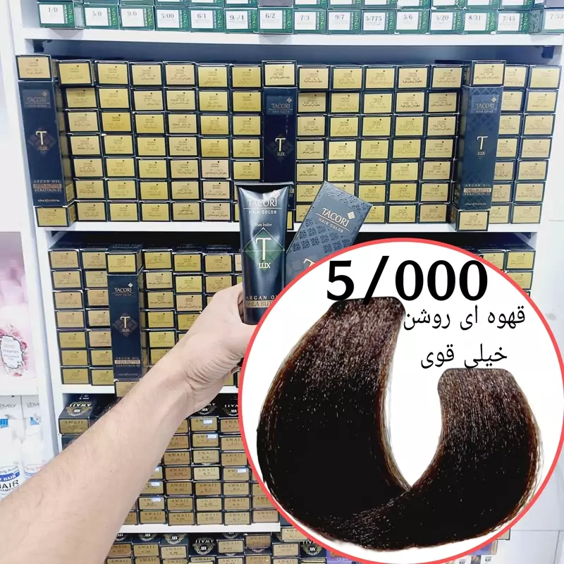 رنگ مو برندتاکوری قهوه ای روشن خیلی قوی(5.000)حجم125میل حاوی شی باتر آرگان وکراتین