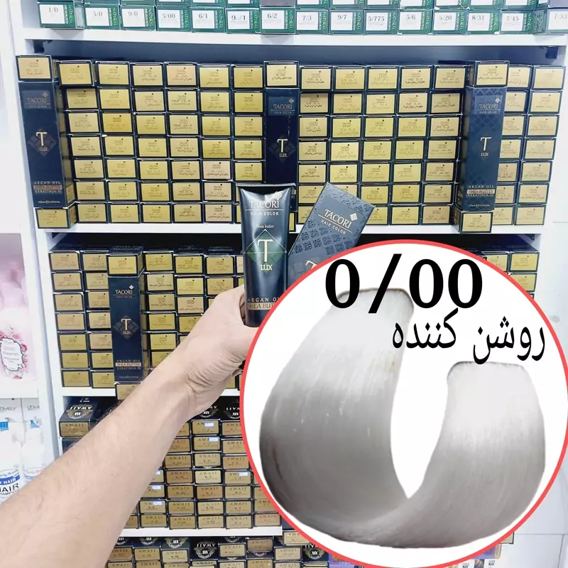 رنگ مو برندتاکوری روشن کننده(0.00) حجم125میل حاوی کراتین و آرگان و شی باتر