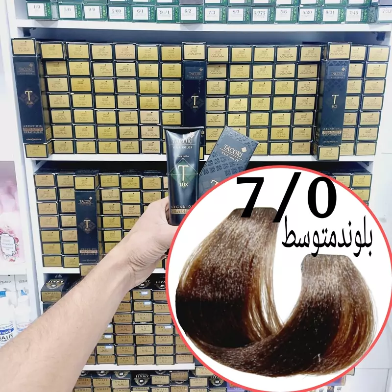 رنگ مو برندتاکوری بلوندمتوسط(7.0)حجم125میل حاوی شی باتر آرگان وکراتین