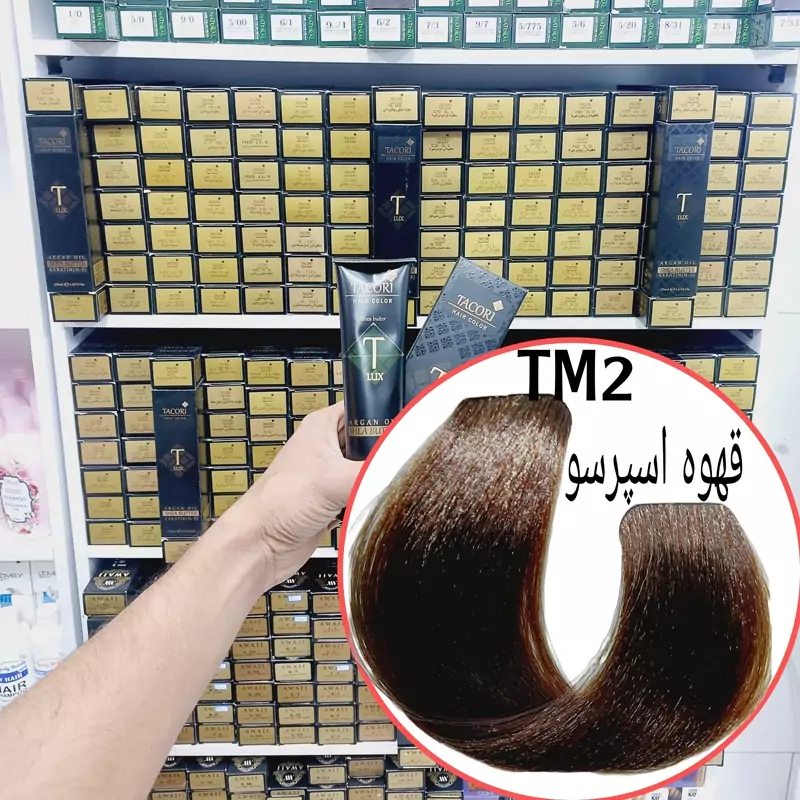 رنگ مو برندتاکوری قهوه اسپرسو (TM2) حجم125میل حاوی کراتین و آرگان و شی باتر