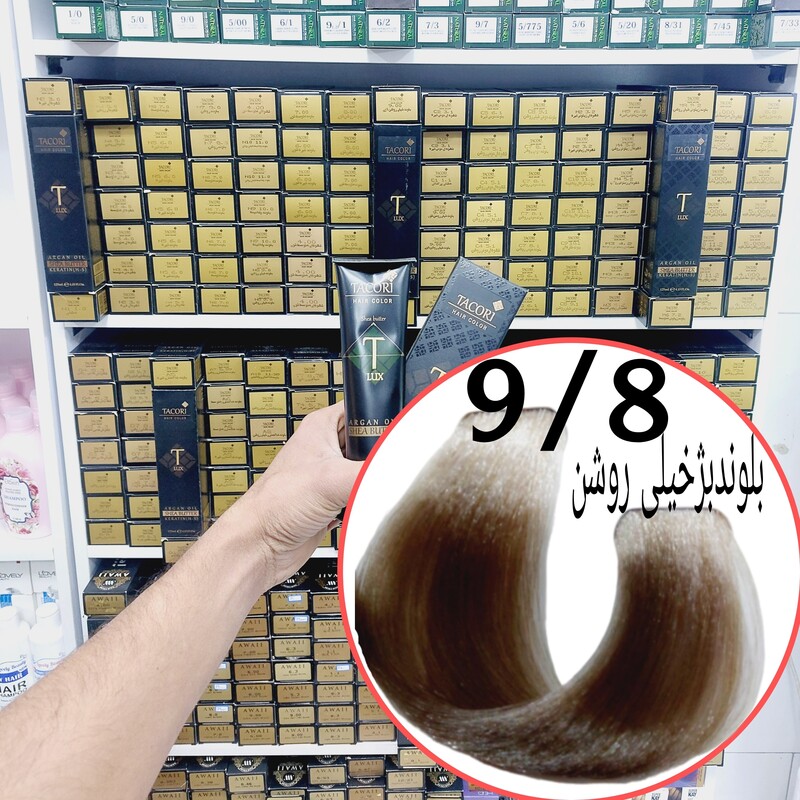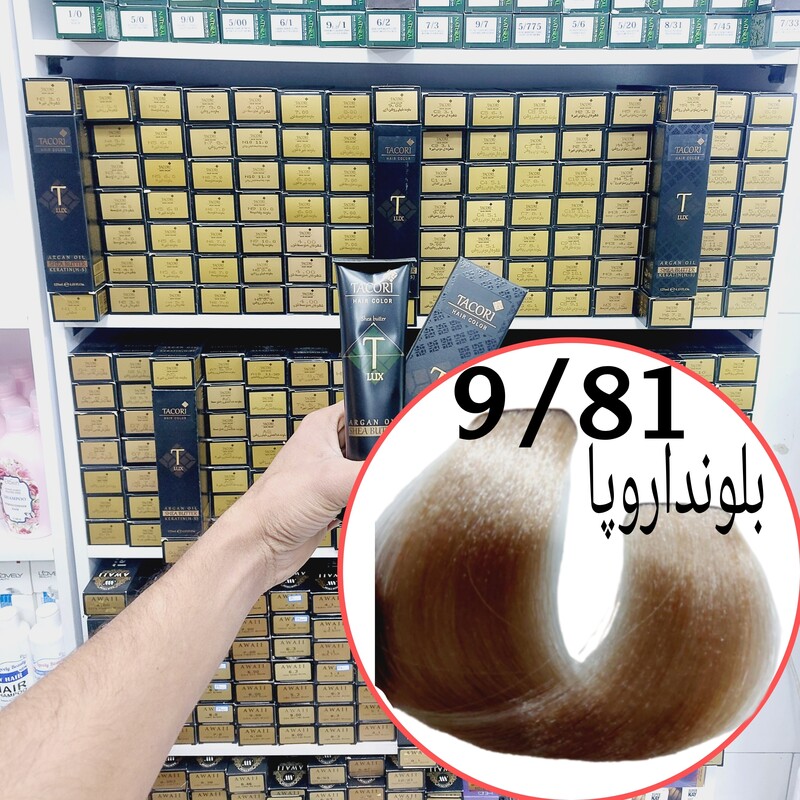 رنگ مو برندتاکوری بلوند اروپا(9.81) حجم125میل حاوی کراتین و آرگان و شی باتر