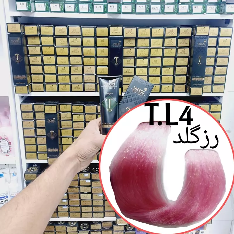 رنگ مو برندتاکوری رز گلد(T.L4) حجم125میل حاوی کراتین و آرگان و شی باتر