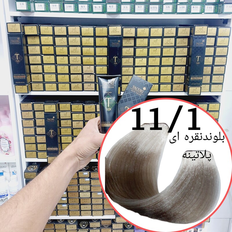رنگ مو برندتاکوری بلوند نقره ای پلاتینه (11.1)حجم125میل حاوی شی باتر آرگان وکراتین