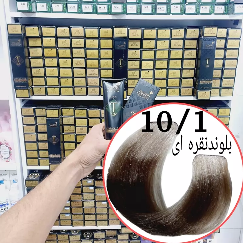 رنگ مو برندتاکوری بلوند نقره ای(10.1) حجم125میل حاوی شی باتر آرگان وکراتین