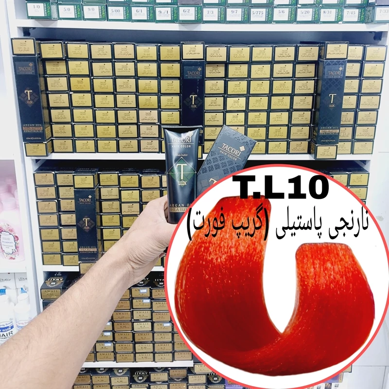 رنگ مو برندتاکوری نارنجی پاستیلی(T.L10) حجم125میل حاوی کراتین و آرگان و شی باتر