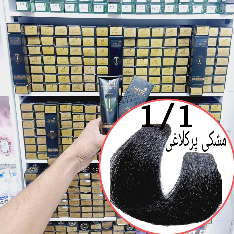 رنگ مو برندتاکوری مشکی پرکلاغی(1.1)حجم125میل حاوی شی باتر آرگان وکراتین