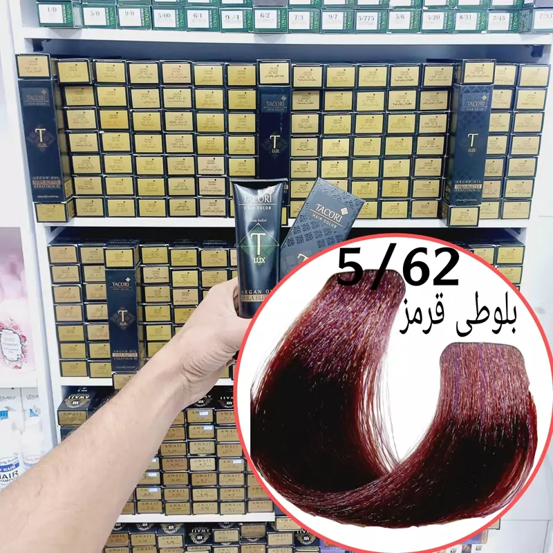 رنگ مو برندتاکوری بلوطی قرمز (5.62) حجم125میل حاوی کراتین و آرگان و شی باتر