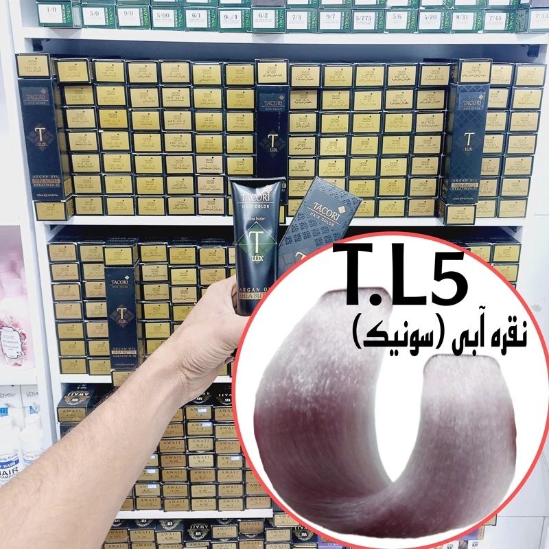 رنگ مو برندتاکوری نقره آبی سونیک(T.L5) حجم125میل حاوی کراتین و آرگان و شی باتر