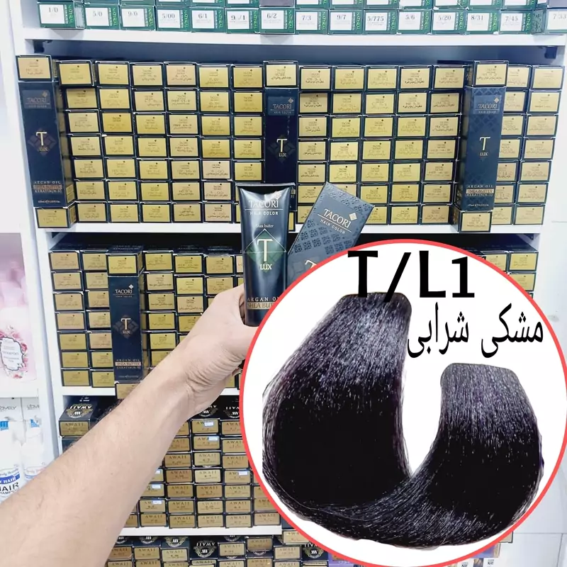 رنگ مو برندتاکوری مشکی شرابی(T.L1) حجم125میل حاوی کراتین و آرگان و شی باتر