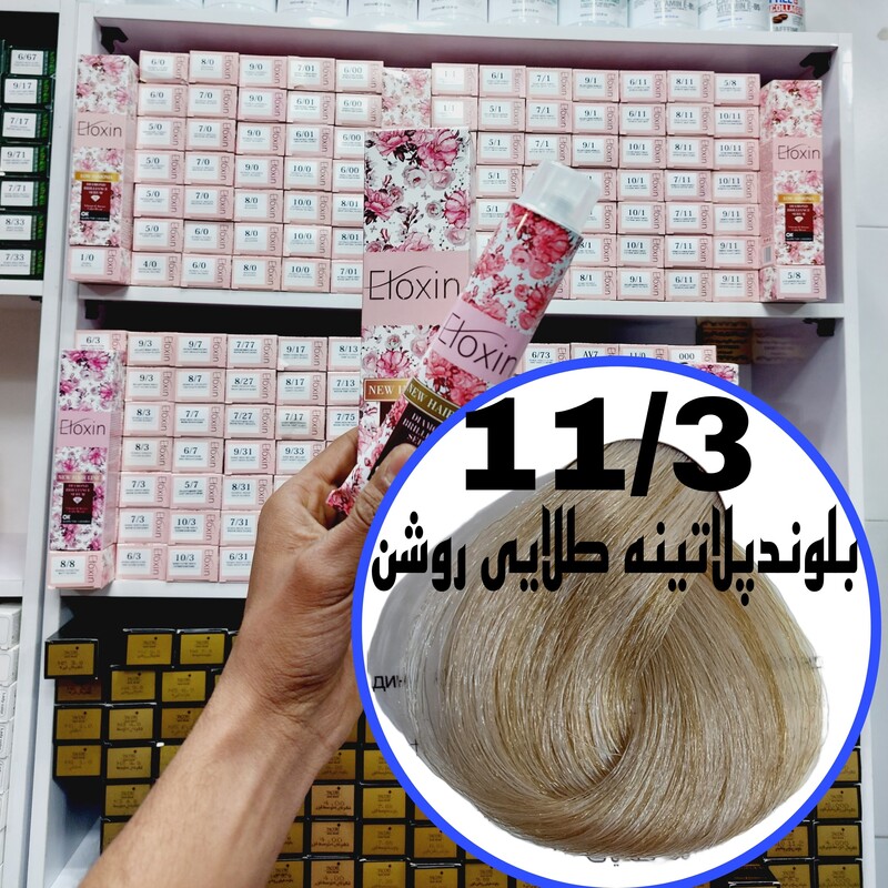 رنگ مو برند الوکسین بلوندپلاتینه طلایی روشن (11.3) حجم120میل حاوی سرم الماس و برلیان