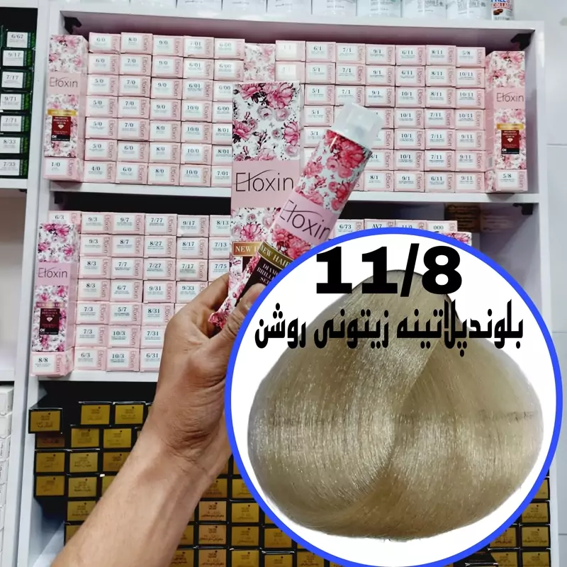 رنگ مو برند الوکسین بلوندپلاتینه زیتونی روشن (11.8) حجم120میل حاوی سرم الماس و برلیان