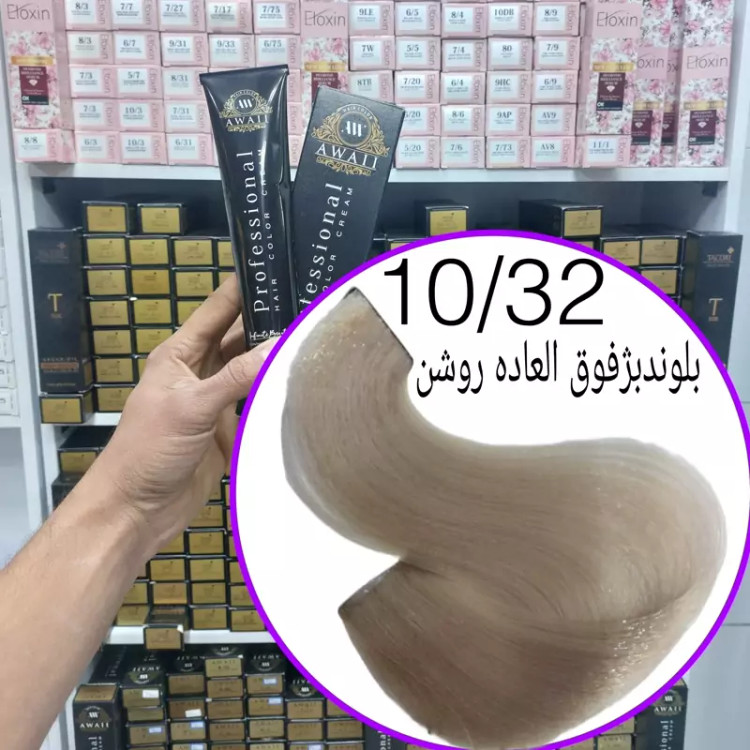 رنگ مو برند آوایی شماره(10.32)بلوند بژ فوق العاده روشن حجم120میل حاوی کراتین و آرگان.ئاوایی.اوایی