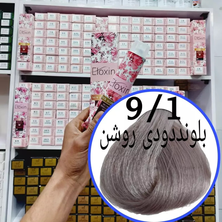 رنگ مو برند الوکسین بلوند دودی روشن (9.1) حجم120میل حاوی سرم الماس و برلیان