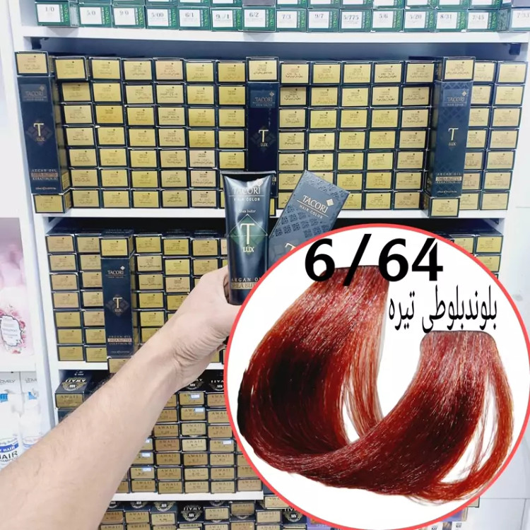 رنگ مو برندتاکوری بلوند بلوطی تیره(6.64) حجم125میل حاوی کراتین و آرگان و شی باتر