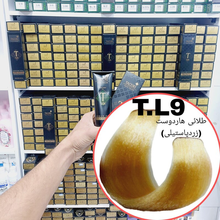 رنگ مو برندتاکوری طلایی هارد وست(T.L9) حجم125میل حاوی کراتین و آرگان و شی باتر