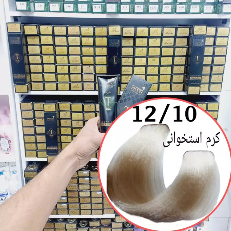 رنگ مو برندتاکوری کرم استخوانی(12.10) حجم125میل حاوی کراتین و آرگان و شی باتر