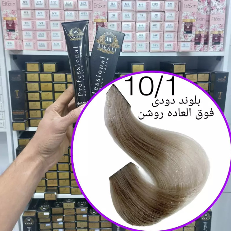 رنگ مو برند آوایی شماره( 10.1) بلوند دودی فوق العاده روشن حجم120میل حاوی کراتین و آرگان.ئاوایی.اوایی