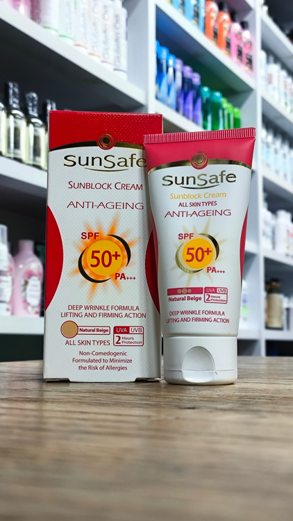 کرم ضد آفتاب و ضدچروک رنگی سان سیف مدل بژ طبیعی SPF50 مناسب انواع پوست، حجم 50 میلیلیتر