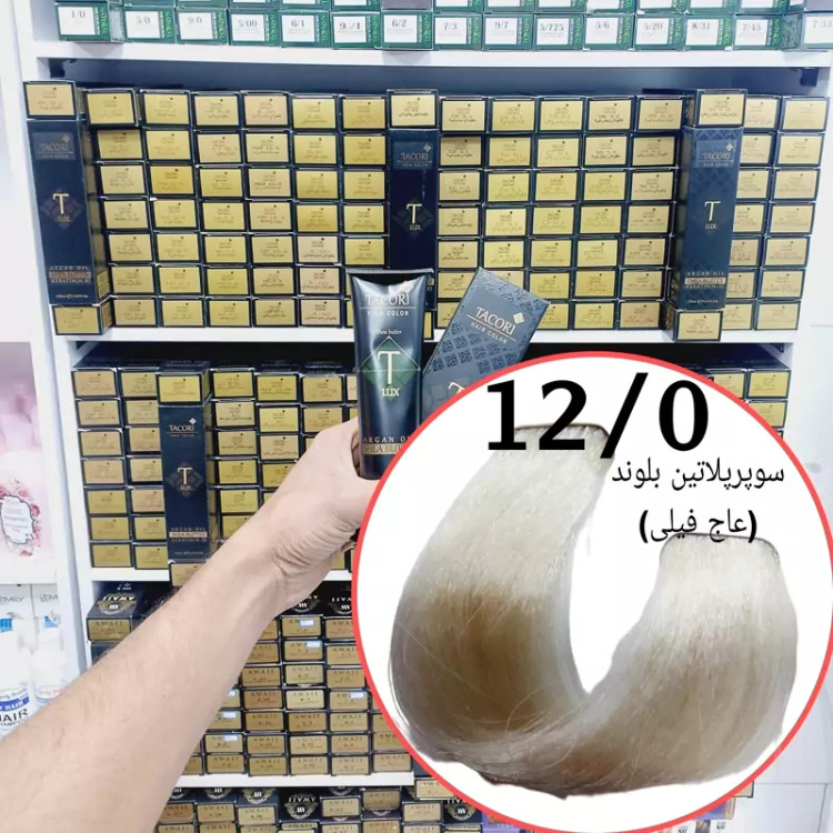 رنگ مو برندتاکوری سوپر پلاتین بلوند(12.0) حجم125میل حاوی کراتین و آرگان و شی باتر