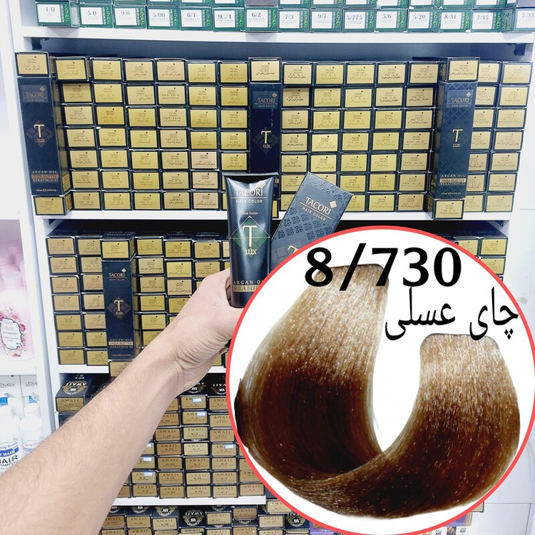 رنگ مو برندتاکوری چای عسلی (8.730) حجم125میل حاوی کراتین و آرگان و شی باتر