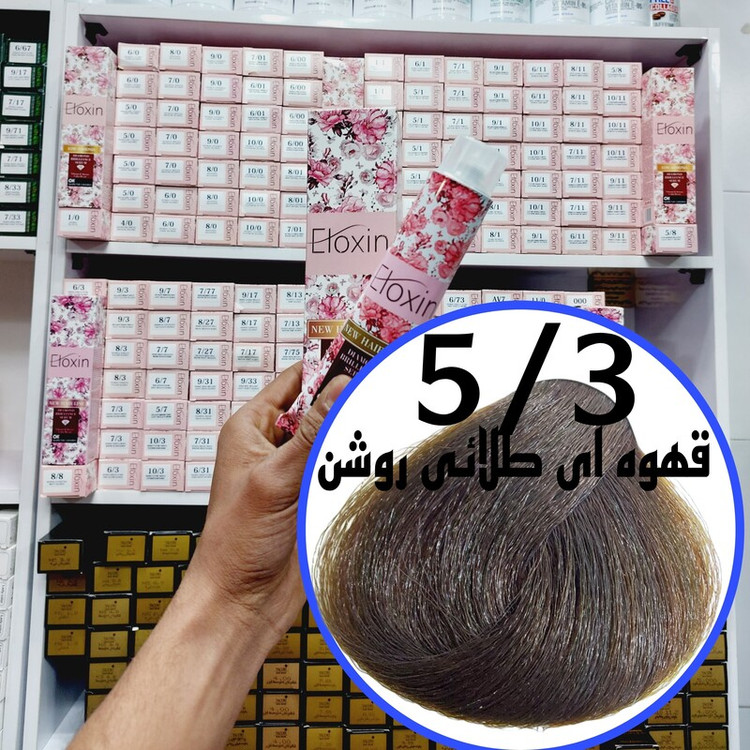 رنگ مو برند الوکسین قهوه ای طلائی روشن (5.3) حجم120میل حاوی سرم الماس و برلیان