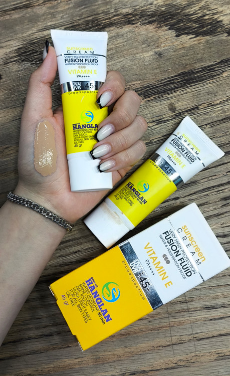 پیشنهاد ما به شما استفاده از ضدآفتاب های برند Gepooil Hanglan با Spf 45 هست که با بهره گیری از بهترین فرمولاسیون، با فرمولاسیون آلمان و در مجهزترین لابراتوار ها تولید، عرضه و روانه بازار گردیده است. ضدآفتاب های منیرال بینظیر برند Gepooil Hanglan در دو رنگ روشن، متوسط و بی رنگ با رعایت کردن تمام استاندار های جهانی از لحاظ تولید و کیفیت و دارا بودن iso بین المللی و با داشتن فاکتور های ضدآفتاب به طور کامل از پوست صورت محافظت می کنند. ضدآفتاب های منیرال برند Gepooil Hanglan با بهره گیری از تکنولوژی ( Fusion fluid) به سرعت جذب پوست میشوند و باطیف گسترده(broad spectrum) بهطور موثری از پوست در برابر اشعههای UVA و UVB محافظت میکنند و بعد از استفاده آثار سفیدی و چسپندگی به جای نمی گذارند. ضدآفتاب های برند هانگلن با دارا بودن حداکثر حفاظتی پوست (PA++++) طیف گسترده هستند. ضدآفتاب های برند هانگلن فاقد پارابن و روغن های مصنوعی هستند. انواع مختلف پوست میتوانند هم در صبح و هم در شب از این ضدآفتاب ها استفاده کنند. در تولید این محصولات از ترکیبات کومدوژنزا یا مسدود کننده منافذ هم استفاده نشده است. پس باعث ایجاد جوش و کومدون نیز نمیشوند.