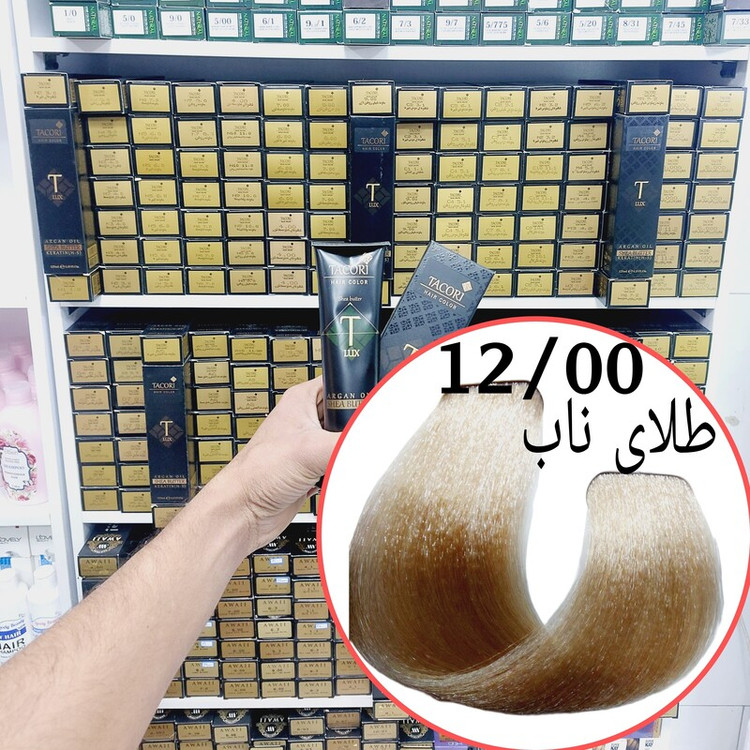 رنگ مو برندتاکوری طلای ناب(12.00) حجم125میل حاوی کراتین و آرگان و شی باتر