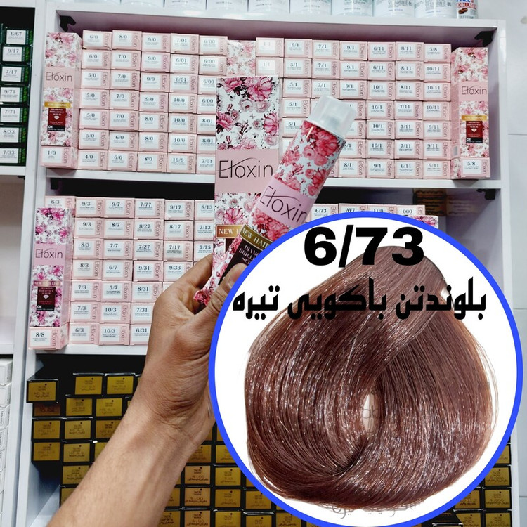 رنگ مو برند الوکسین بلوند تن باکویی تیره (6.73) حجم120میل حاوی سرم الماس و برلیان