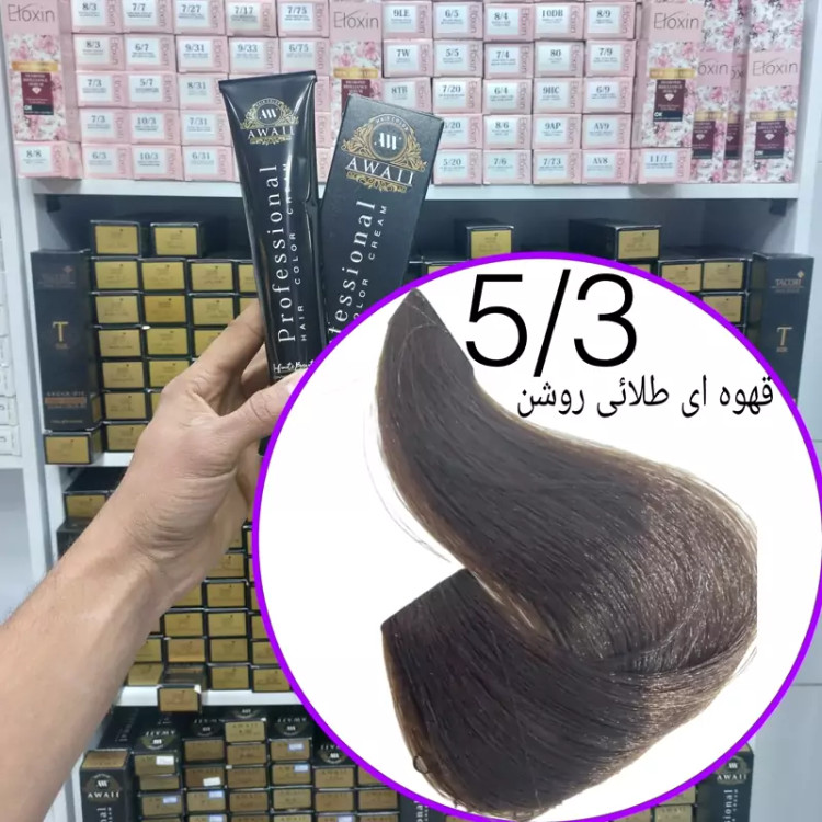 رنگ مو برند آوایی شماره(5.3)قهوه ای طلایی روشن حجم120میل حاوی کراتین و آرگان.ئاوایی.اوایی