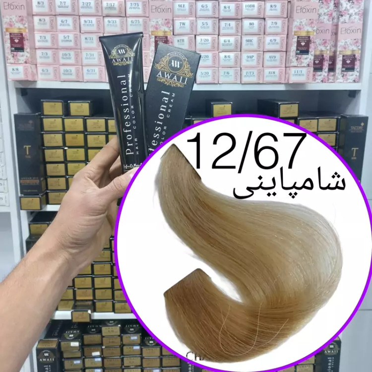 رنگ مو برند آوایی شماره(12.67) شامپاینی حجم120میل حاوی کراتین و آرگان.ئاوایی.اوایی