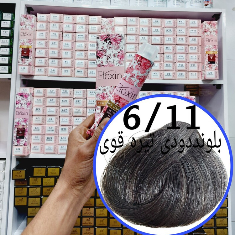 رنگ مو برند الوکسین بلوند دودی تیره قوی (6.11) حجم120میل حاوی سرم الماس و برلیان