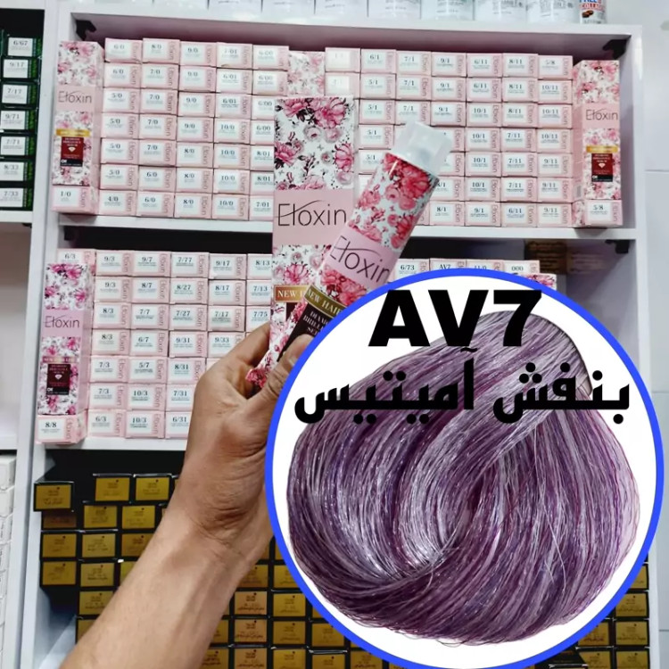 رنگ مو برند الوکسین بنفش آمیتیس(AV7) حجم120میل حاوی سرم الماس و برلیان