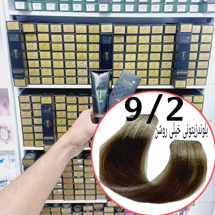 رنگ مو برندتاکوری بلوند زیتونی خیلی روشن(9.2)حجم125میل حاوی شی باتر آرگان وکراتین