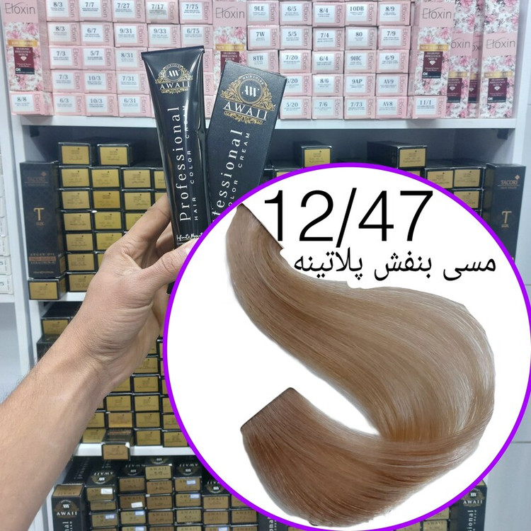 رنگ مو برند آوایی شماره(12.47) مسی بنفش پلاتینه حجم120میل حاوی کراتین و آرگان.ئاوایی.اوایی