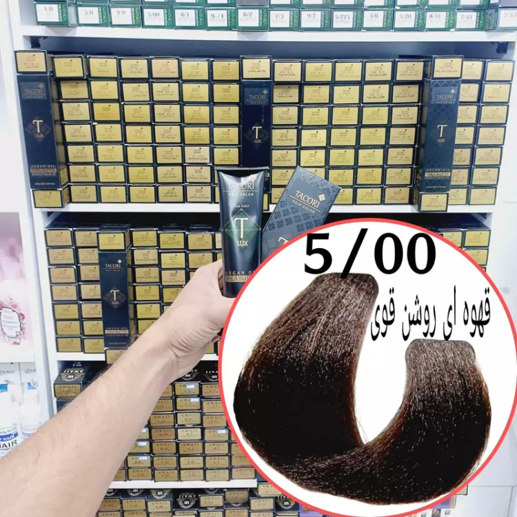 رنگ مو برندتاکوری قهوه ای روشن قوی(5.00)حجم125میل حاوی شی باتر آرگان وکراتین