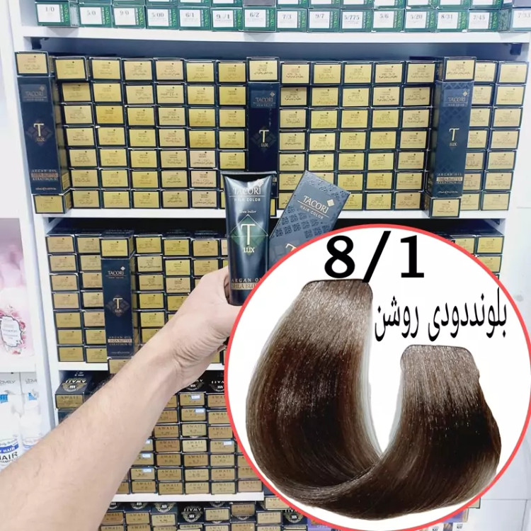رنگ مو برندتاکوری بلوند دودی روشن(8.1) حجم125میل حاوی شی باتر آرگان وکراتین