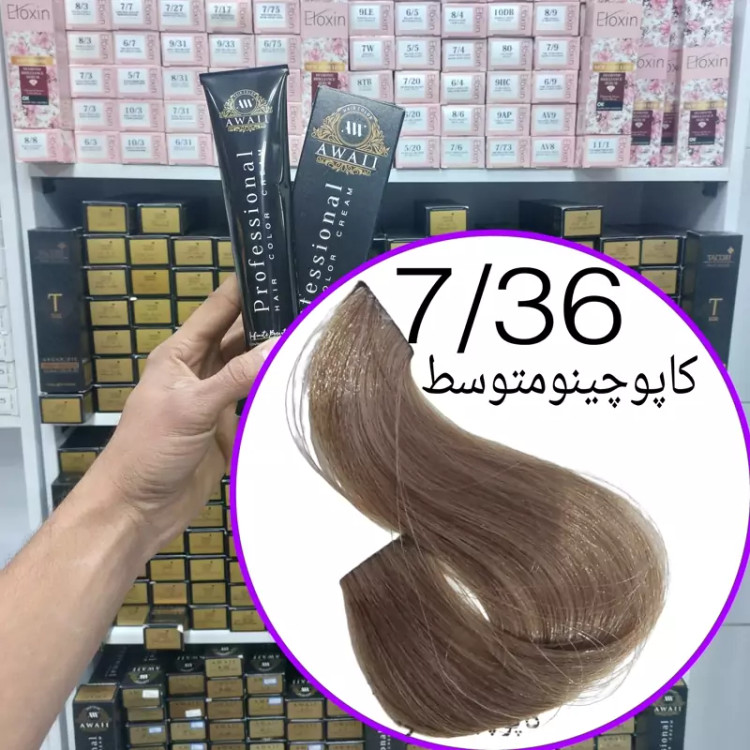 رنگ مو برند آوایی شماره(7.36)کاپوچینو متوسط حجم120میل حاوی کراتین و آرگان.ئاوایی.اوایی