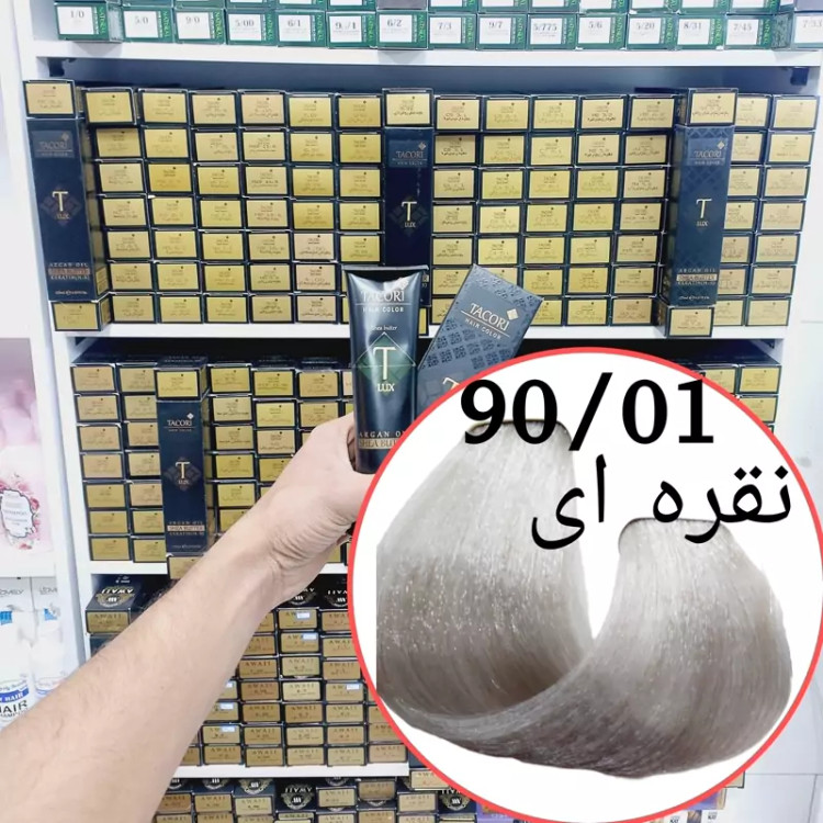 رنگ مو برندتاکوری نقره ای(90.01) حجم125میل حاوی کراتین و آرگان و شی باتر