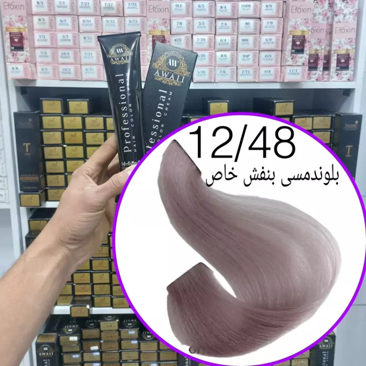 رنگ مو برند آوایی شماره(12.48) بلوند مسی بنفش خاص حجم120میل حاوی کراتین و آرگان.ئاوایی.اوایی