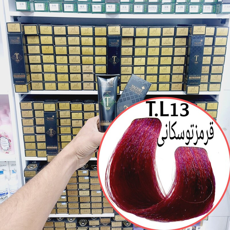 رنگ مو برندتاکوری قرمز توسکانی(T.L13) حجم125میل حاوی کراتین و آرگان و شی باتر